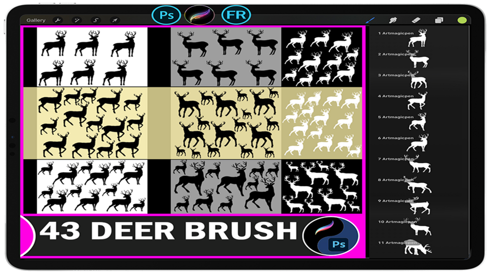 This is a set of "deer" brushes that can add a touch of nature and a wintery atmosphere to your artwork.