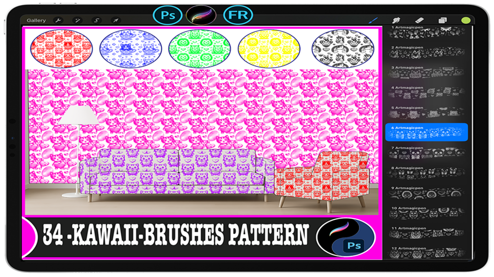 Compatible with Photoshop and Procreate, this set is versatile and can be used for a wide range of applications, including illustrations, textile designs, stationery, packaging, cards, fan art, and backgrounds. Easily add a pop and cute atmosphere to your creations.